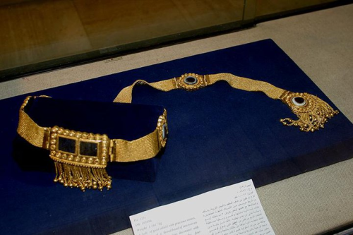 Jewelry from the Queen’s tombs discovered in 1988 under the floor of the Royal Palace of King Ashurnasirpal II at Nimrud by an Iraqi archaeological team led by Muzahem Mahmoud, was on display at Baghdad’s National Museum for a few months before the Iraqi invasion of Kuwait in 1990, at which time it was put in storage at the Central Bank in Baghdad vault. It was feared looted along with many other priceless treasures of the museum until it was discovered in the bank storage in 2003.