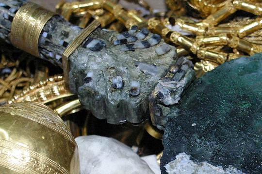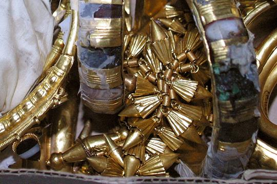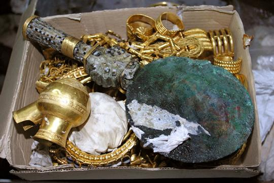 Photos from 2003, after the treasure was re-discovered in the Central Bank of Iraq storage. The photos were posted on the website of the museum in Bagdad, but the website is currently down. [http://www.baghdadmuseum.org/secret_s/pages/284.htm]