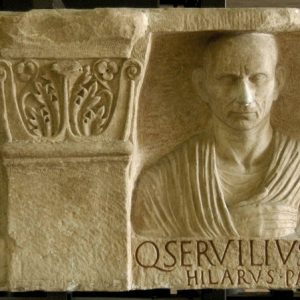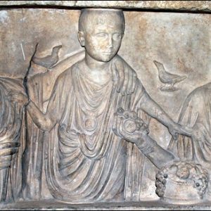 On another tomb relief of c.40–c.30 BC in Rome, the iconography of which also points to a family of ex-slave status, the father wears the toga to which he was entitled only after his manumission and the mother is dressed modestly in