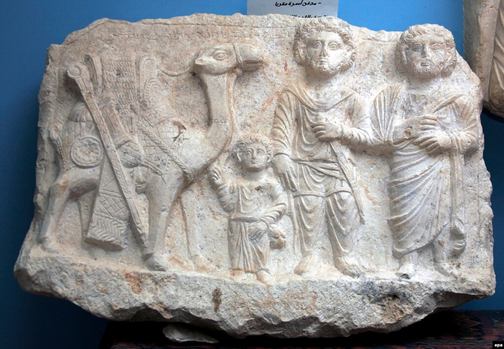 This bas-relief was also found during excavations in 2008. It depicts Palmyra merchants, a child and a camel.