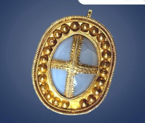 Gold and chalcedony, Meotian burial. Maikop region, Psenafa [Псенафа] archaeological complex, burial 62, 2nd-1st century BCE.