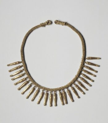 The question arises as to whether this type of necklace is an import from Greece itself, a local imitation, or a creation of the goldsmiths’ workshops operating in the wealthy cities of the Greek periphery.” https://boutique.louvre.fr/fr/product/24110-collier-grec-pendeloques-dore.html